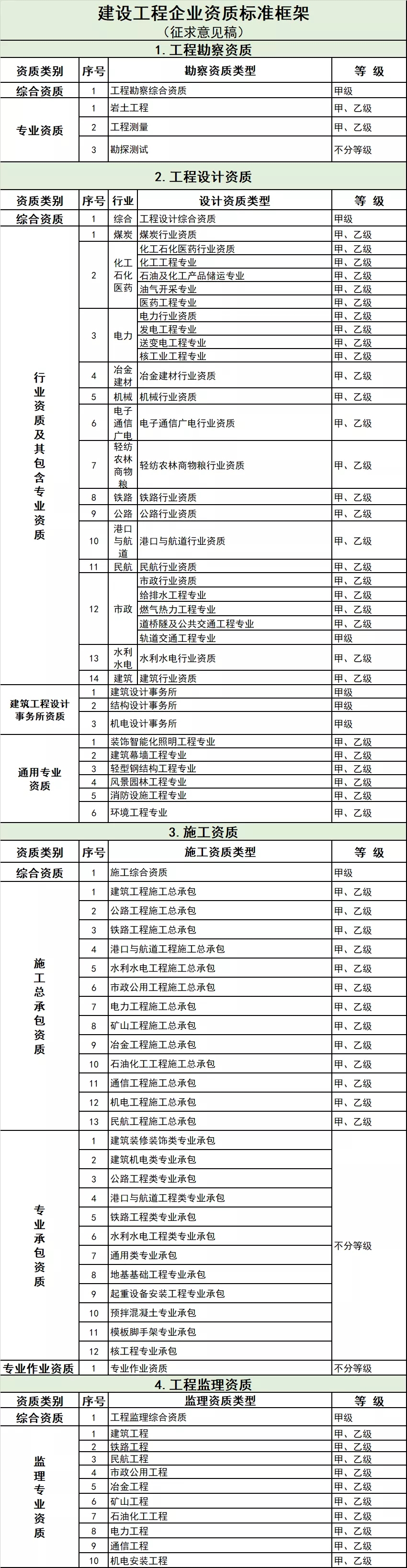 2、建設(shè)工程企業(yè)資質(zhì)標準框架(征求意見稿)