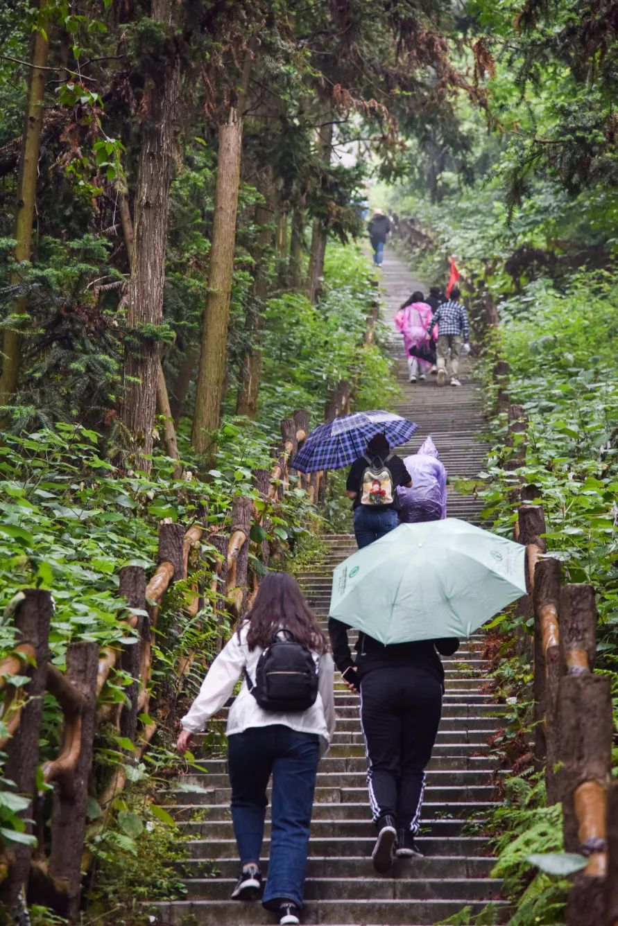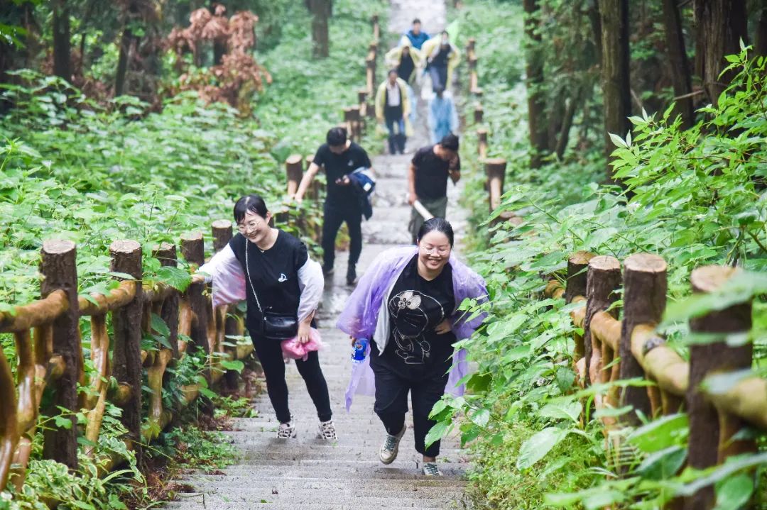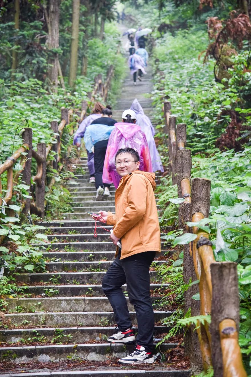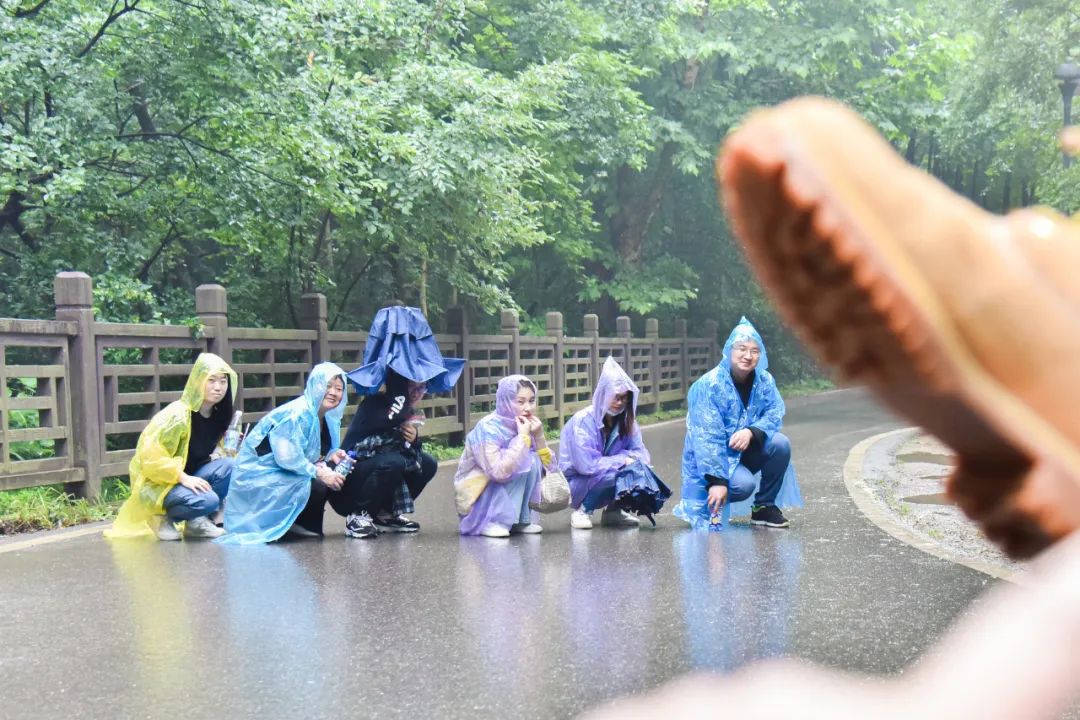 不一會兒的功夫,雨越下越大,一群舍不得下山的人還在努力拍照。