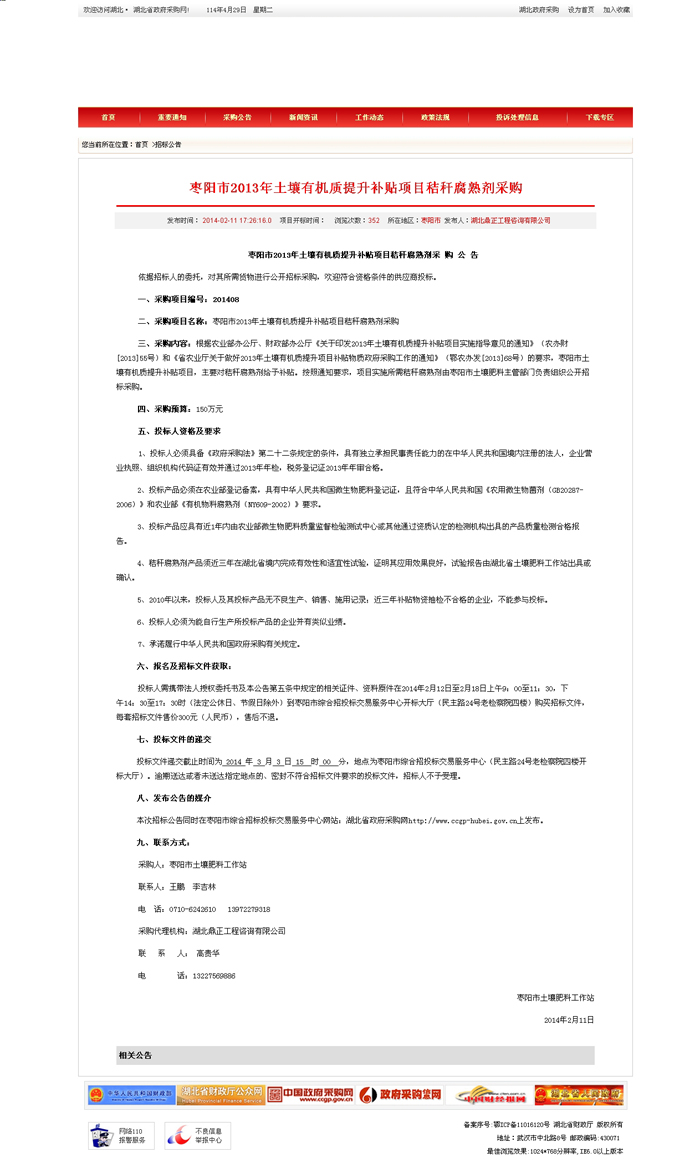 棗陽市2013年土壤有機(jī)質(zhì)提升補(bǔ)貼項(xiàng)目秸稈腐熟劑采購