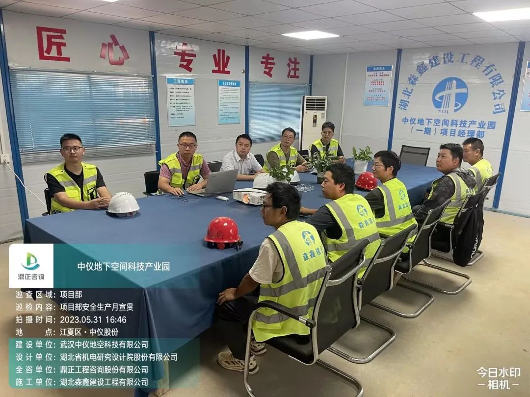 5月31日,鼎正項目管理事業部在中儀地下空間科技產業園項目組織“安全生產月”主題學習,項目管理事業部副經理張力主持會議,他指出,安全責任重于泰山,全體人員要深入貫徹習近平總書記關于安全生產的講話精神,持續深入學習安全生產“十五條措施”,從嚴從緊落實“第一責任人”責任,堅決防范生產安全事故發生。