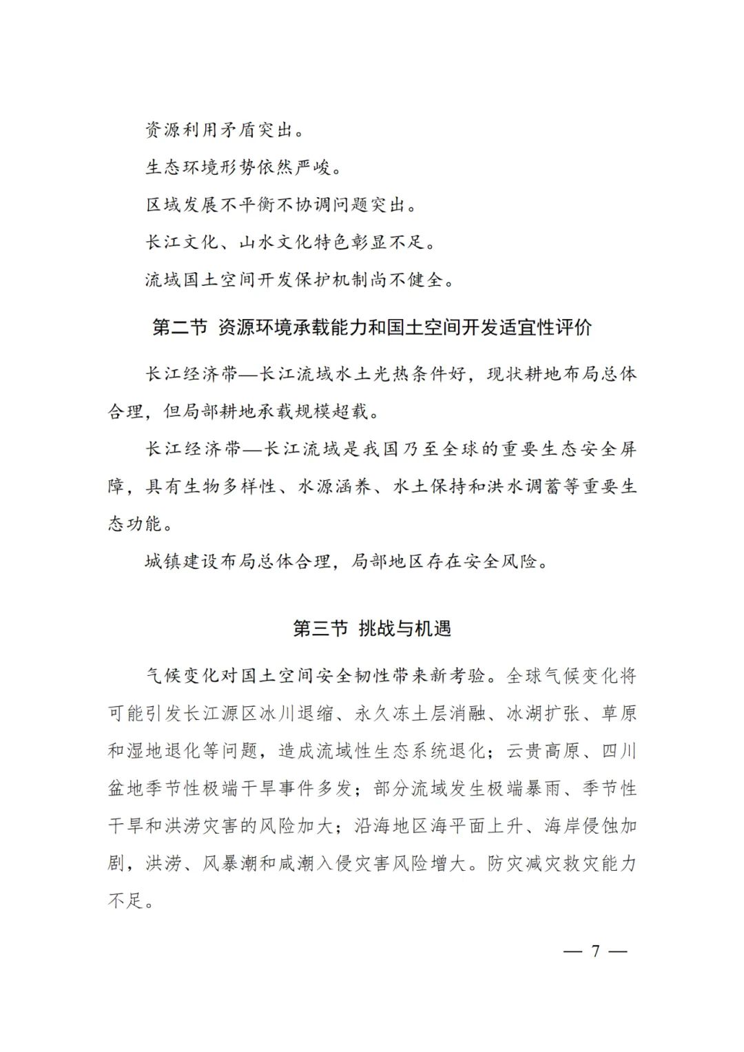 2024年2月9日,《長江經濟帶—長江流域國土空間規劃(2021—2035年)》經國務院批復同意。9月10日,自然資源部正式印發《長江經濟帶—長江流域國土空間規劃(2021—2035年)》。規劃范圍包括長江經濟帶11個省(市)全域,以及《長江保護法》規定的長江流域其他8省(區、市)的相關縣級行政區域,共計1173個縣級行政區域。規劃范圍包括陸域國土和內水、領海。其中,陸域面積240萬平方公里。(后附規劃范圍詳細表格)規劃期限為2021年至2035年。