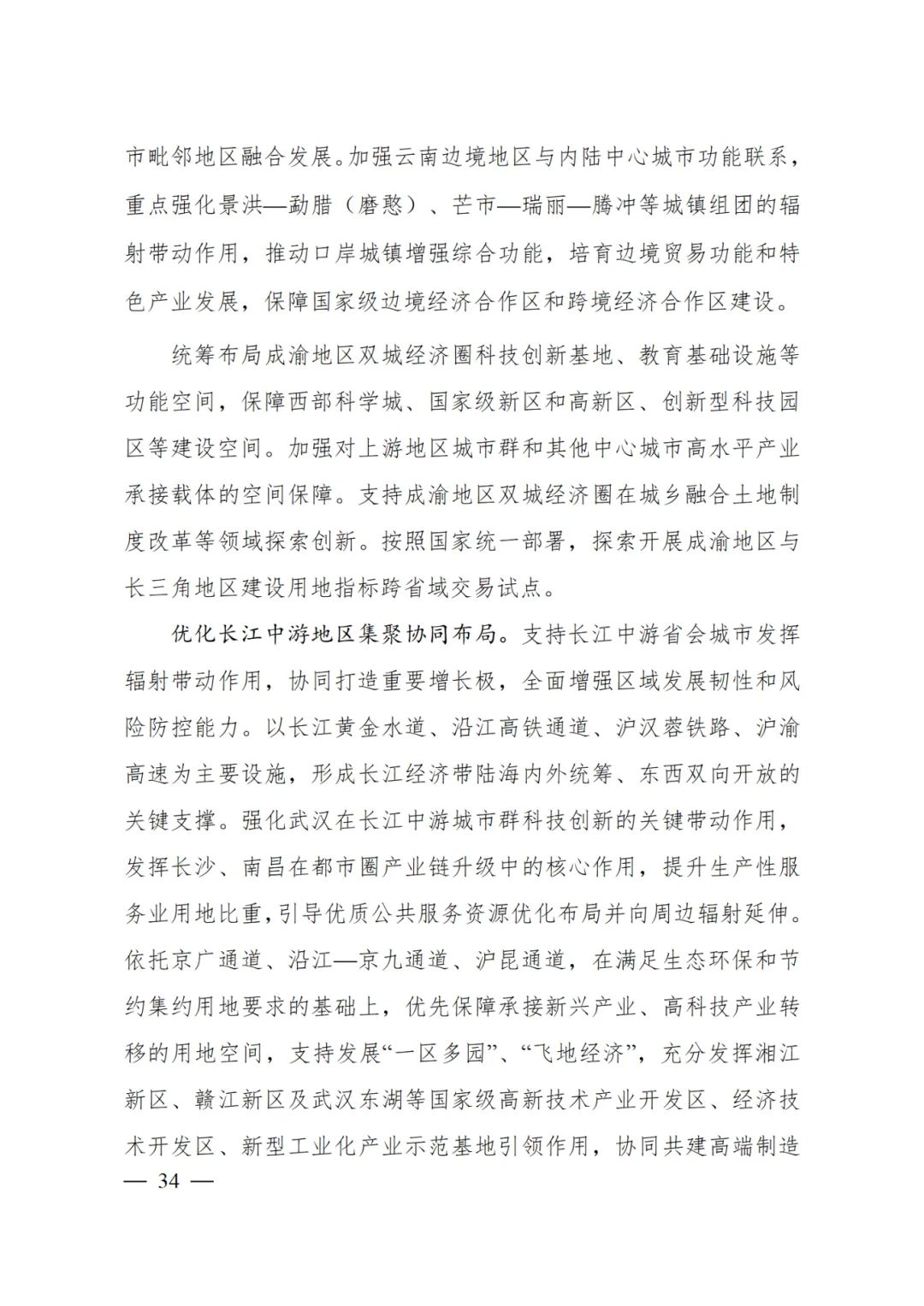 在云貴高原地區、高山峽谷地區,拓展太陽能、風能等可再生能源開發、運輸通道空間。在長江中下游地區,有效銜接城市功能布局,加大分布式能源、江水源熱泵和儲蓄能等空間保障。在具備條件的地區積極安全有序發展核電,保障核電工程建設用地,保護好極為稀缺的核電廠址資源。