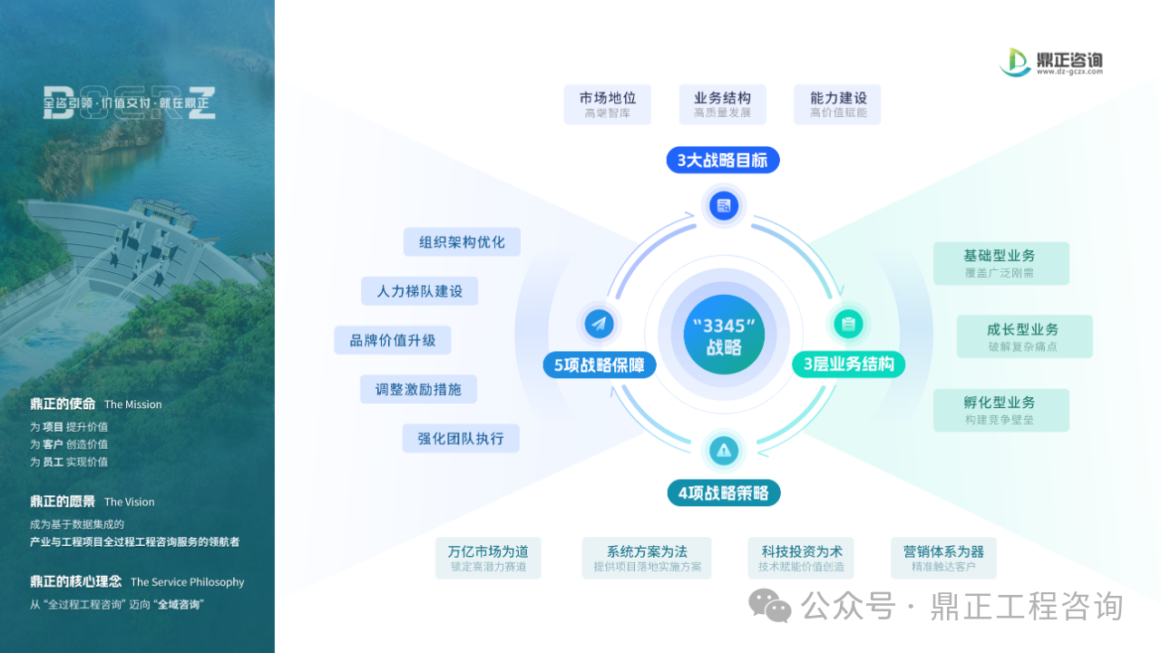 彭總指出,歷經(jīng)行業(yè)深度調(diào)整,鼎正已站在全新的發(fā)展起點。他強調(diào),破局的關鍵在于轉變思維模式,以全新姿態(tài)擁抱變革,探索新業(yè)務、構建新模式。“3345”戰(zhàn)略正是驅動這場轉型的核心引擎,通過堅定扎根縣域市場、構筑堅實技術護城河,重塑工程咨詢行業(yè)價值標準,鼎正將邁向更成熟、更理性的發(fā)展新階段,未來的發(fā)展也會變得更穩(wěn)健。
