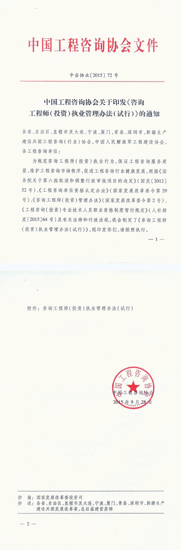 咨詢工程師(投資)執業管理辦法(試行)