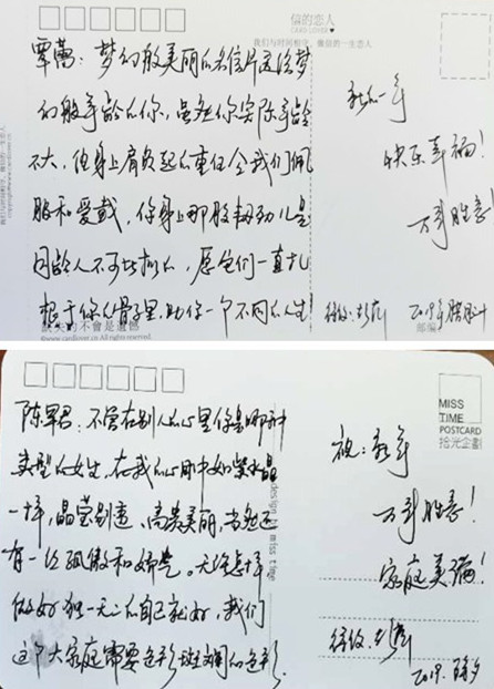 ▲彭總寫給覃蕾、陳軍君的祝福卡片