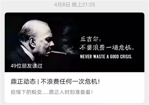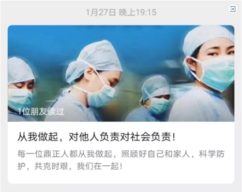 在疫情爆發(fā)之始,鼎正公司領(lǐng)導(dǎo)高度關(guān)注疫情動態(tài),辦公場所每日消毒,周密防控。在封城之時,呼吁全體同事安心在家做好防疫,不給社會增加負擔(dān)。
